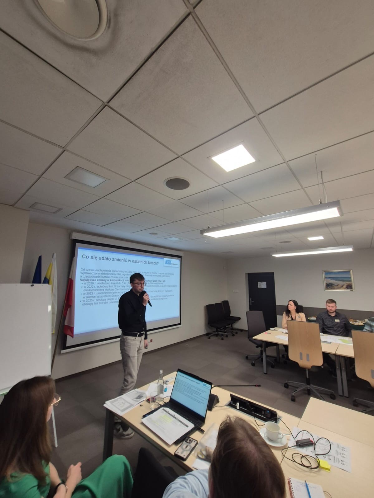 Na spotkanie w ramach projektu „Zielona Transformacja Samorządów” zaproszono ponad trzydzieści mieszkanek i mieszkańców naszego miasta, reprezentujących różne grupy społeczne – młodzież, seniorów, osoby pracujące, korzystające z komunikacji miejskiej oraz te, które chciałyby częściej z niej korzystać.