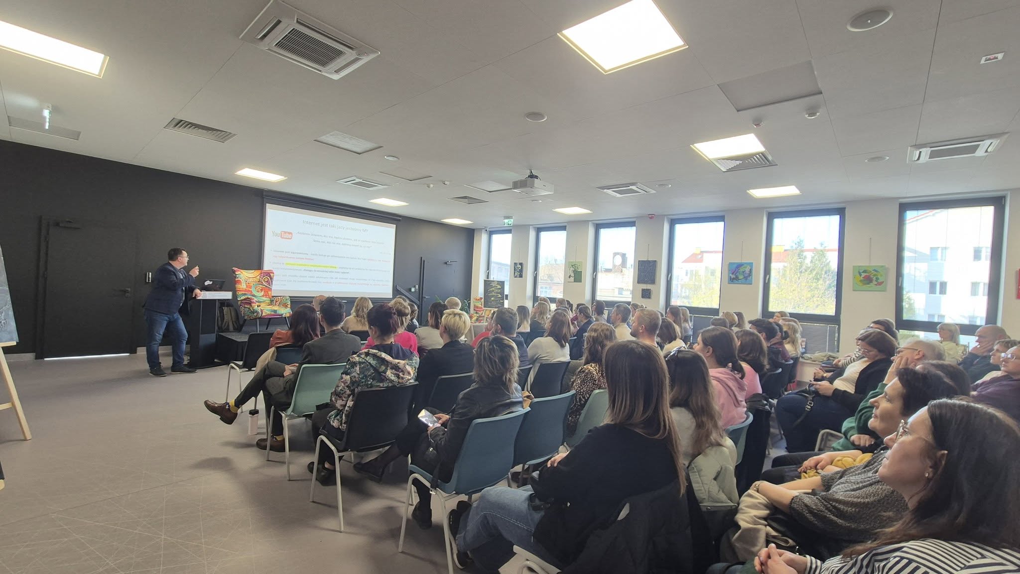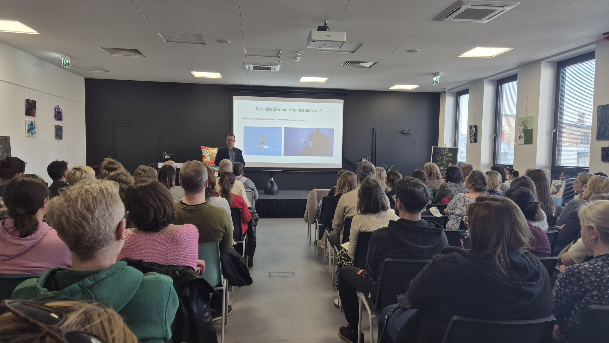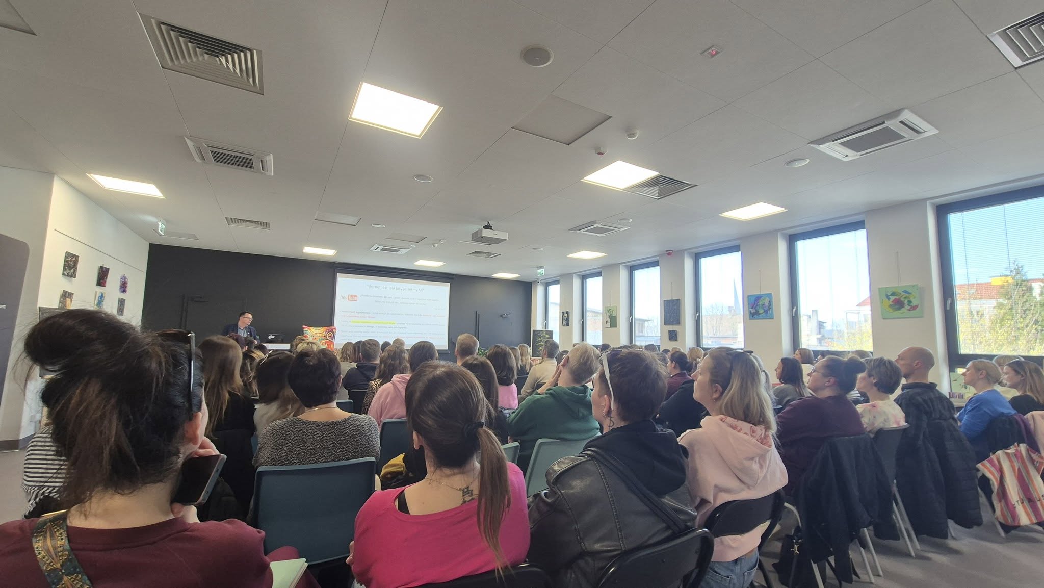 Sala była wypełniona po brzegi, a rodzice aktywnie uczestniczyli w dyskusji, poruszając temat ryzykownego korzystania z internetu oraz zagrożeń, z jakimi mogą zetknąć się dzieci w przestrzeni cyfrowej. Rozmowy dotyczyły między innymi hejtu i nękania w sieci, rozpowszechniania nieprawdziwych informacji, a także niebezpiecznych zachowań, takich jak bezrefleksyjne naśladowanie treści czy kradzież tożsamości.